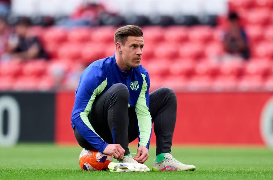- A combinação entre a gestão do Barcelona e as regras de fair play financeiro de La Liga tem gerado histórias fascinantes. A mais recente envolve o goleiro Marc-André Ter Stegen. Depois de passar quase toda a última temporada afastado por uma séria lesão no joelho, Ter Stegen teve novos problemas físicos neste verão europeu e precisou passar por uma cirurgia nas costas. O Barcelona, desesperado por qualquer brecha para registrar jogadores que não deveria conseguir registrar, pulou em cima da oportunidade de usar uma provisão no regulamento que permite substituir um jogador machucado por um saudável. Para isso acontecer, um painel independente de La Liga tem que considerar que a lesão é de longo prazo e o deixará afastado por pelo menos quatro meses. Para fazer essa análise, precisa receber os documentos médicos do jogador - que precisa dar o seu consentimento para o compartilhamento de informações pessoais. Ter Stegen se recusou a dá-lo. E mais: foi às redes sociais informar que o tempo de recuperação previsto é, imagino que por pura coincidência, de apenas três meses. O molho especial da história é que o Barcelona quer abrir espaço para registrar exatamente o jogador que espera que assuma a posição de titular definitivamente, o goleiro Joan García, contratado do Espanyol por € 25 milhões. Ou seja, quer a contribuição de Ter Stegen para promover o seu substituto e ficou irritado por não tê-la a ponto de retirar a braçadeira de capitão do alemão - que, vale lembrar, ainda tem três anos de contrato. (Bruno Bonsanti)