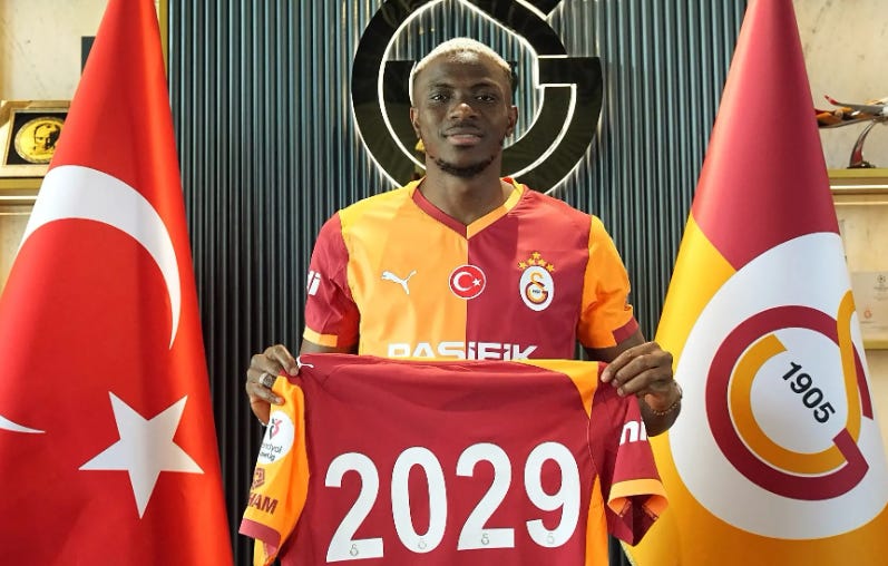 Osimhen manteve seu alto nível no Galatasaray, mesmo fora de uma das principais ligas da Europa. O nigeriano ajudou os Leões a conquistarem a dobradinha nacional, com Süper Lig e Copa da Turquia. Anotou 37 gols e serviu oito assistências em 41 partidas, números assombrosos. E pareceu desfrutar do ambiente, o que facilitou sua decisão por permanecer em Istambul. Contribuiu para escolha, é claro, o salário muito acima das ofertas que tenderia a receber de clubes maiores da Europa. O acordo salarial é estimado em €15 milhões líquidos por ano, além de €1 milhão em bônus de fidelidade a cada temporada dos quatro anos de contrato que cumprir e mais €5 milhões em direitos de imagem. O que surpreende mais ainda são os €75 milhões desembolsados pelo Galatasaray para a transferência, referentes à cláusula de rescisão exigida pelo Napoli para clubes de fora da Itália.