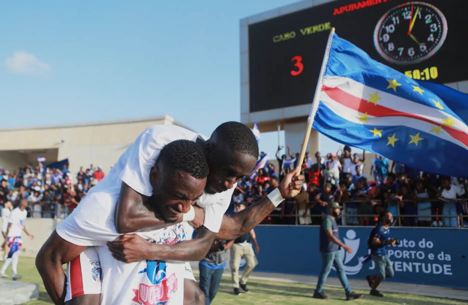 A Copa do Mundo possui uma propriedade mágica de deslocar, num piscar de olhos, o epicentro do planeta aos mais distintos cantos do globo. A atração exercida por este ponto, contudo, não corresponde a uma especificidade geofísica: ela está centrada na emoção que o futebol é capaz de proporcionar. E como nunca antes sentido na história dos Mundiais, um diminuto arquipélago no Atlântico fez o mundo da bola gravitar ao seu redor nesta semana. A nação de menor território a se classificar para uma Copa, com a segunda menor população, garante uma narrativa gigante. No ano em que celebra os 50 anos de sua independência, Cabo Verde exprime seu orgulho através da bola.