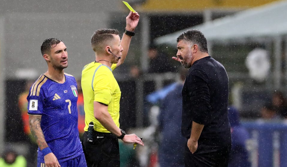 A Itália precisa ganhar da Irlanda do Norte e depois de Gales ou da Bósnia para chegar à Copa do Mundo, e Gattuso pode reclamar o quanto quiser do formato das eliminatórias, mas se não conseguir ganhar da Irlanda do Norte e depois de Gales ou da Bósnia, não precisa da Copa do Mundo para apenas passear nos Estados Unidos.